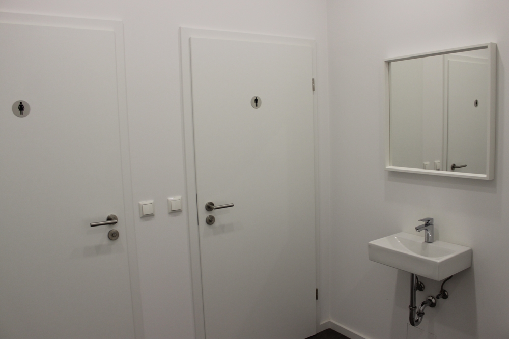 Die maßangepasste Teeküche inkl. Spülmaschine und Kühlschrank, als auch ein separater Serverraum, welcher gleichzeitig Platz für ein Archiv bietet, stehen zur Verfügung. Zwei getrennte Toiletten ausgestattet mit hochwertigem Vinyl und Sanitär, können sowohl für Mitarbeiter als auch Kunden genutzt werden.