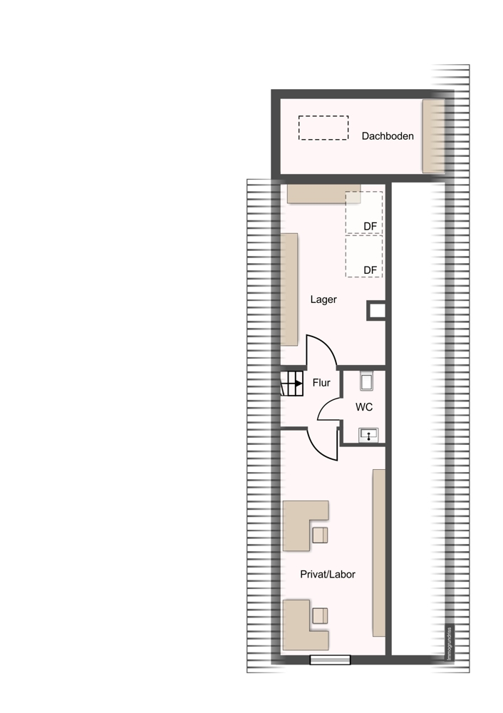 Im 2. Obergeschoss dieses gepflegten Hauses erwartet Sie eine großzügige Gewerbeeinheit mit ca. 145 m² Fläche, die sich über zwei Etagen erstreckt.