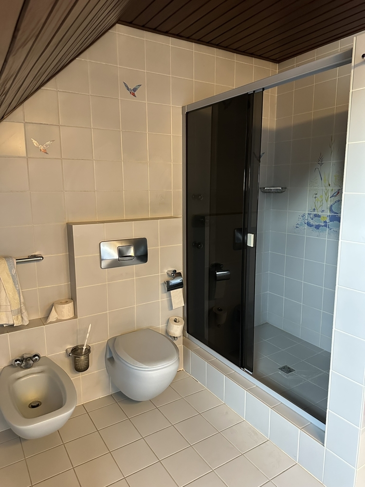 Im Dachgeschoss befindet sich ein großes Studiozimmer mit minimalen Dachschrägen, das über Küchenanschlüsse sowie ein eigenes Tageslichtbad mit Dusche verfügt – ideal als Jugendbereich, Büro oder Rückzugsort für ein Familienmitglied.