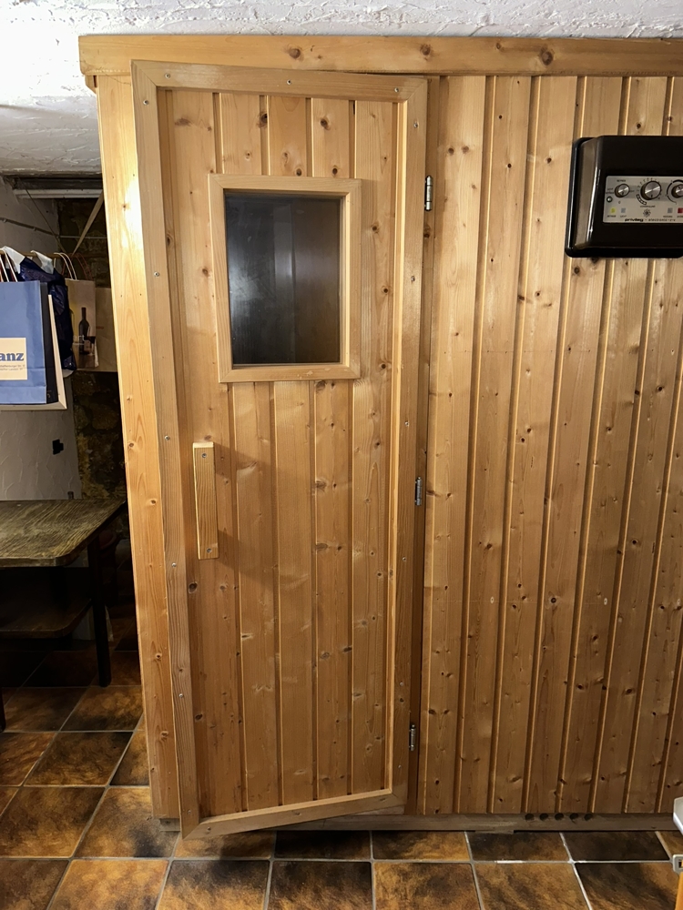 Für die Funktionstüchtigkeit der Sauna im Keller sowie der Whirlpoolbadewanne im Obergeschoss und des offenen Kamins im Erdgeschoss kann keine Garantie übernommen werden, da diese Einrichtungen längere Zeit nicht genutzt wurden.