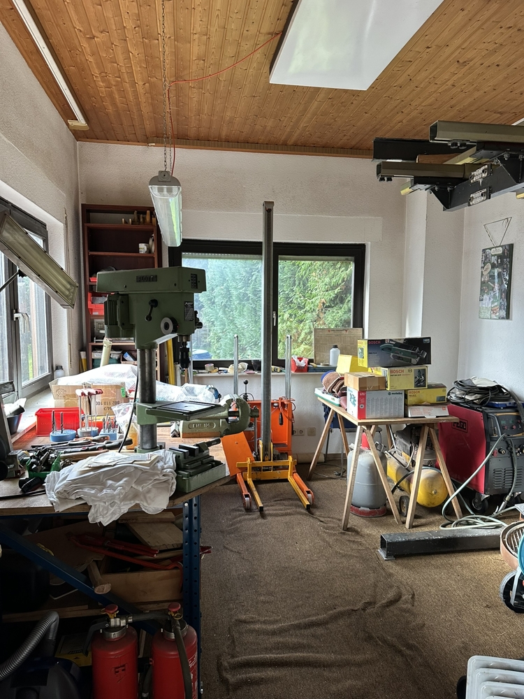 Das angrenzende Nebengebäude, welches im Jahr 1976 angebaut wurde, umfasst ca. 29 m² Nutzfläche und wird derzeit als Werkstatt und Lager genutzt. Es verfügt über eine eigene Toilette – nach Rücksprache mit dem Bauamt könnte hier ggf. eine kleine Einliegerwohnung realisiert werden.
