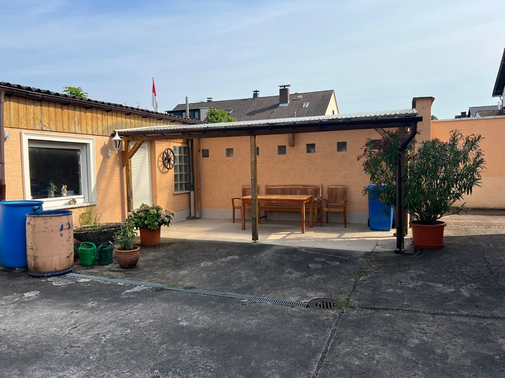 Zum Haus gehören insgesamt drei Garagen – eine Doppelgarage sowie eine Einzelgarage. Eine der Garagen ist aktuell vermietet, die beiden anderen stehen derzeit leer und können nach Bedarf genutzt oder vermietet werden. Zusätzlich gibt es einen großen Geräteschuppen mit überdachtem Freisitz, der weiteren Stauraum und Platz für entspannte Stunden im Freien bietet. Der Freisitz wird derzeit von allen Mietern gemeinschaftlich genutzt.