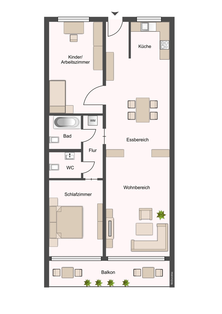 Die Wohnung wurde 2023 komplett saniert, einschließlich der Bäder, und überzeugt mit modernen Ausstattungen und einer durchdachten Raumaufteilung. Die offene Küche mit Einbauküche aus 2022 geht fließend in den angrenzenden Essbereich über, der den idealen Übergang zum Wohnzimmer bildet. Das Wohnzimmer, das durch halbhohe Wände leicht abgeteilt ist, bietet direkten Zugang zum Balkon mit Westausrichtung – der perfekte Ort, um den Tag bei Sonnenuntergang zu genießen. Ein weiteres Highlight ist das zusätzliche Kinder-/Arbeitszimmer, das sich flexibel als gemütliches Kinderzimmer, inspirierendes Homeoffice oder Gästezimmer nutzen lässt.