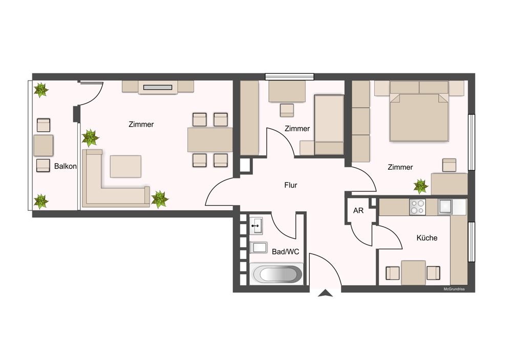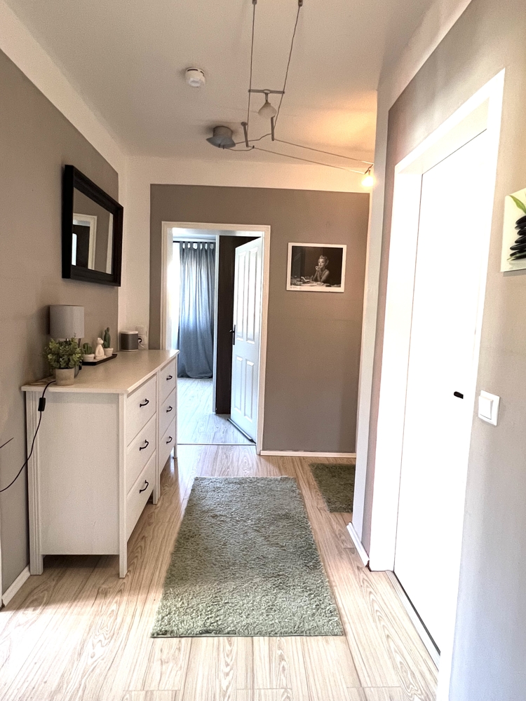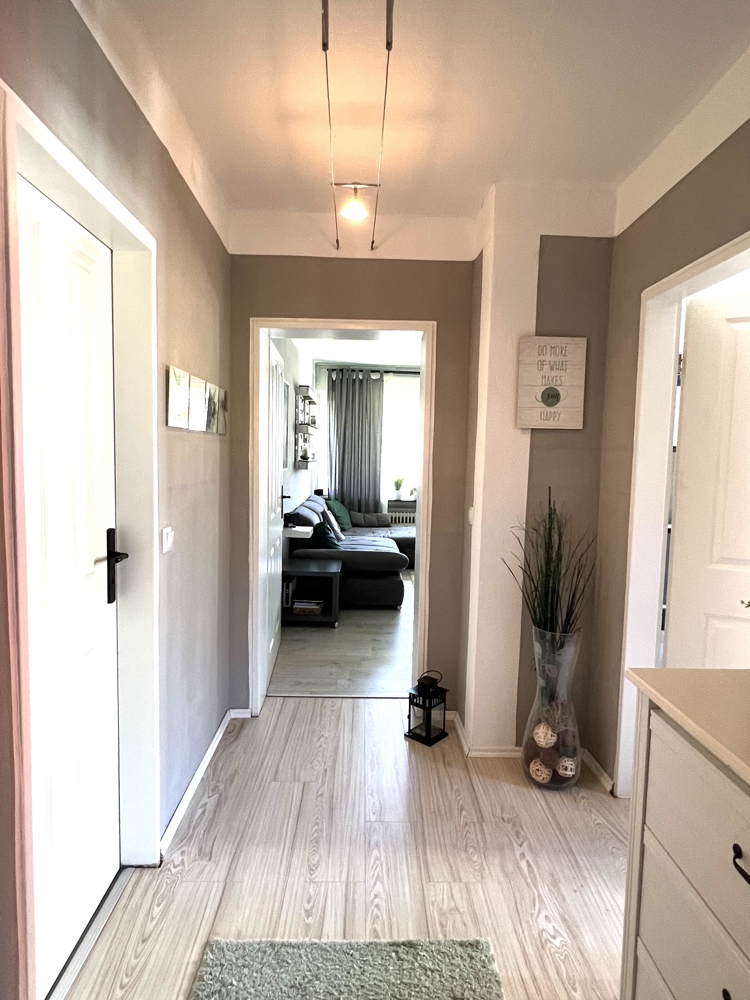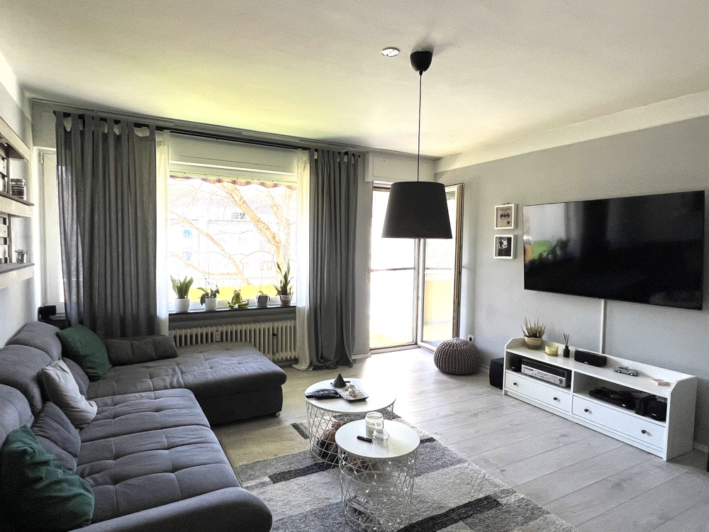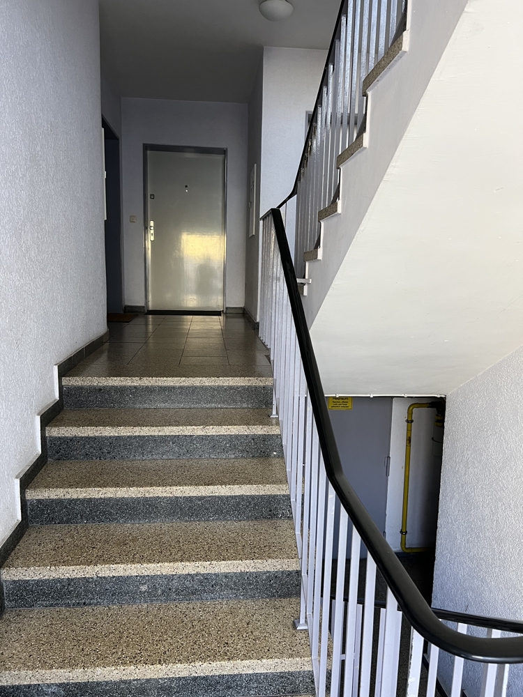 Über das Treppenhaus gelangen Sie bequem in die Wohnung und betreten zunächst den zentral gelegenen Flur, von dem aus alle Räume optimal erreichbar sind. Das großzügig geschnittene Wohnzimmer überzeugt mit einer angenehmen Wohnatmosphäre und bietet direkten Zugang zum westlich ausgerichteten Balkon, auf dem Sie entspannte Stunden in der Abendsonne genießen können.