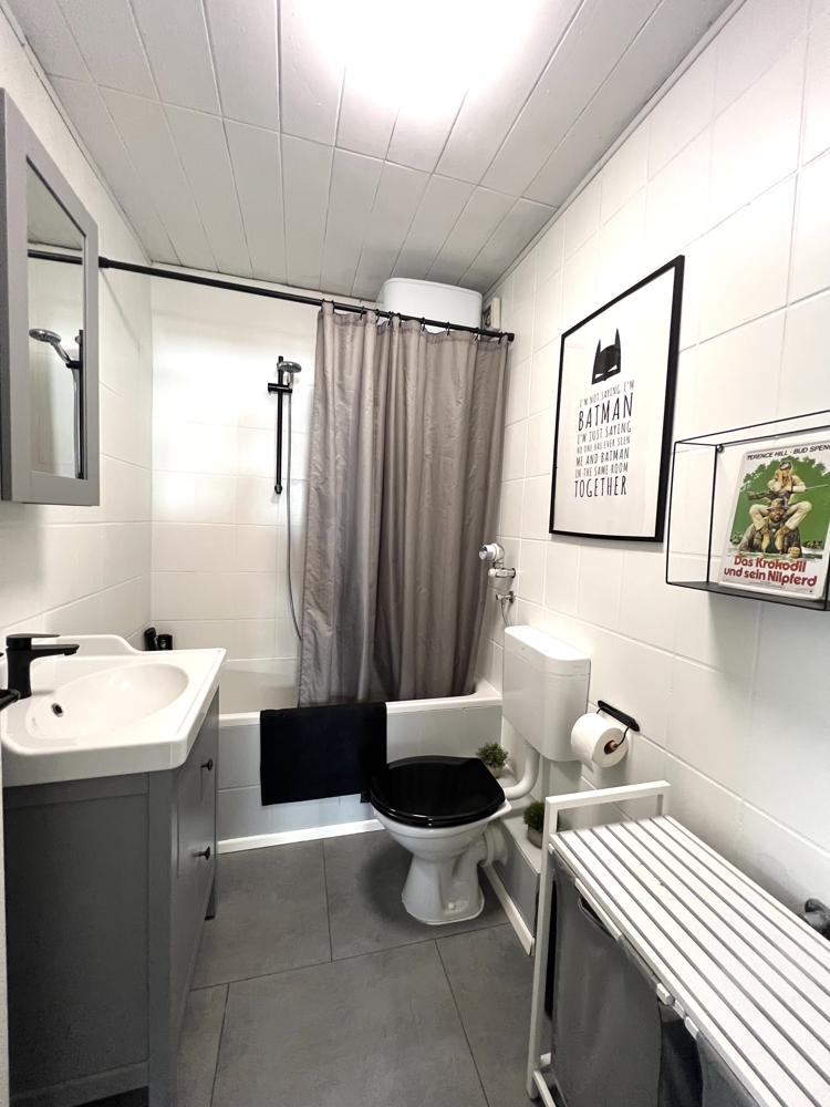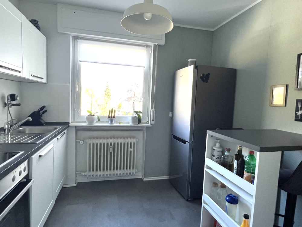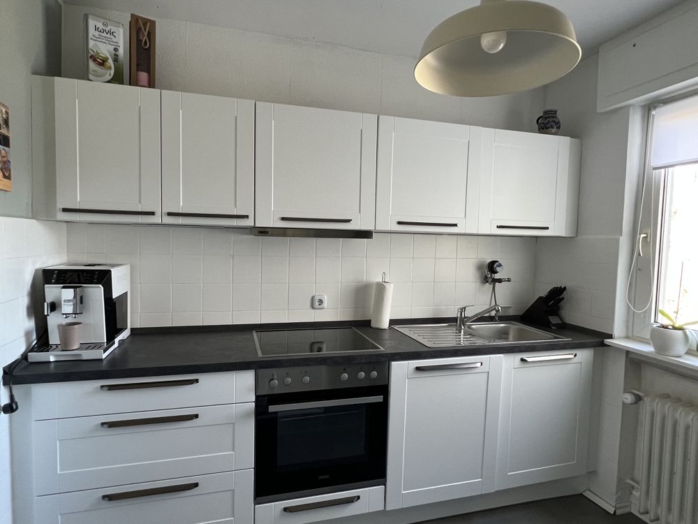 Das innenliegende Badezimmer präsentiert sich in einem sehr gepflegten und zeitlosen Zustand und ist funktional ausgestattet. Die Küche verfügt über eine moderne Einbauküche, die erst vor wenigen Jahren installiert wurde. Zusätzlich bietet sich hier genügend Platz für einen kleinen Essbereich oder eine praktische Thekenlösung.