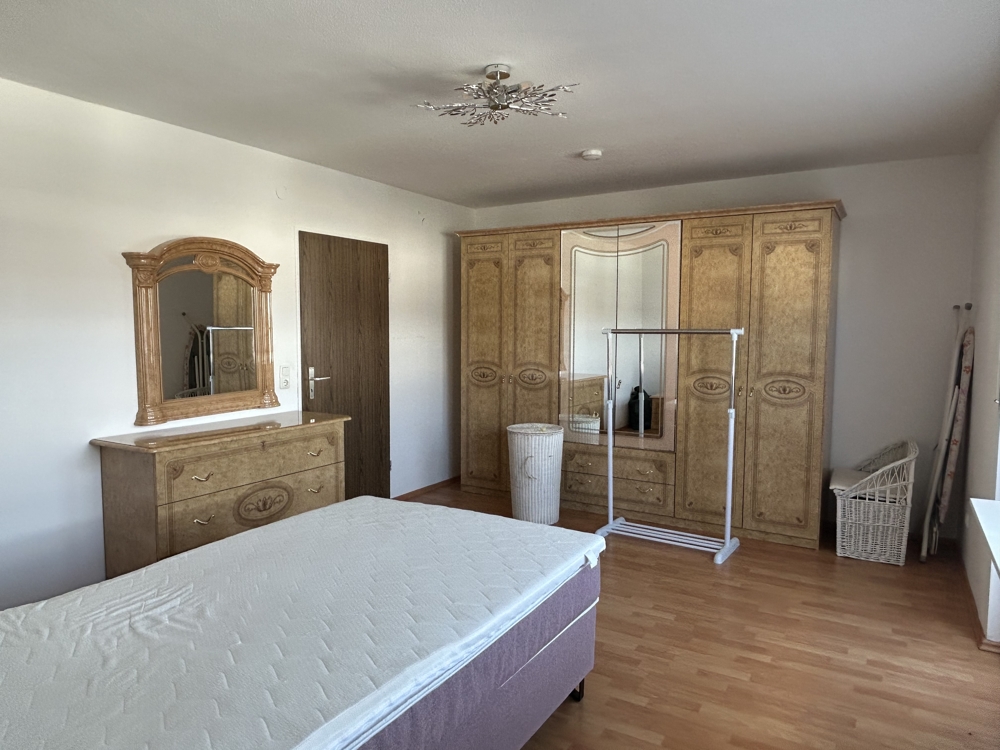 Das helle Schlafzimmer besticht durch seine angenehme Größe, große Fensterflächen und den direkten Zugang zum Balkon. Dieser ist mit einem Wasseranschluss ausgestattet und lädt zu entspannten Stunden mit Familie und Freunden ein.