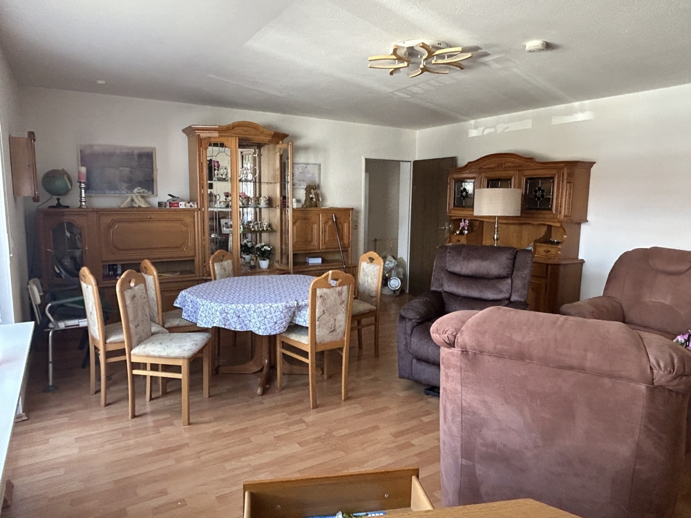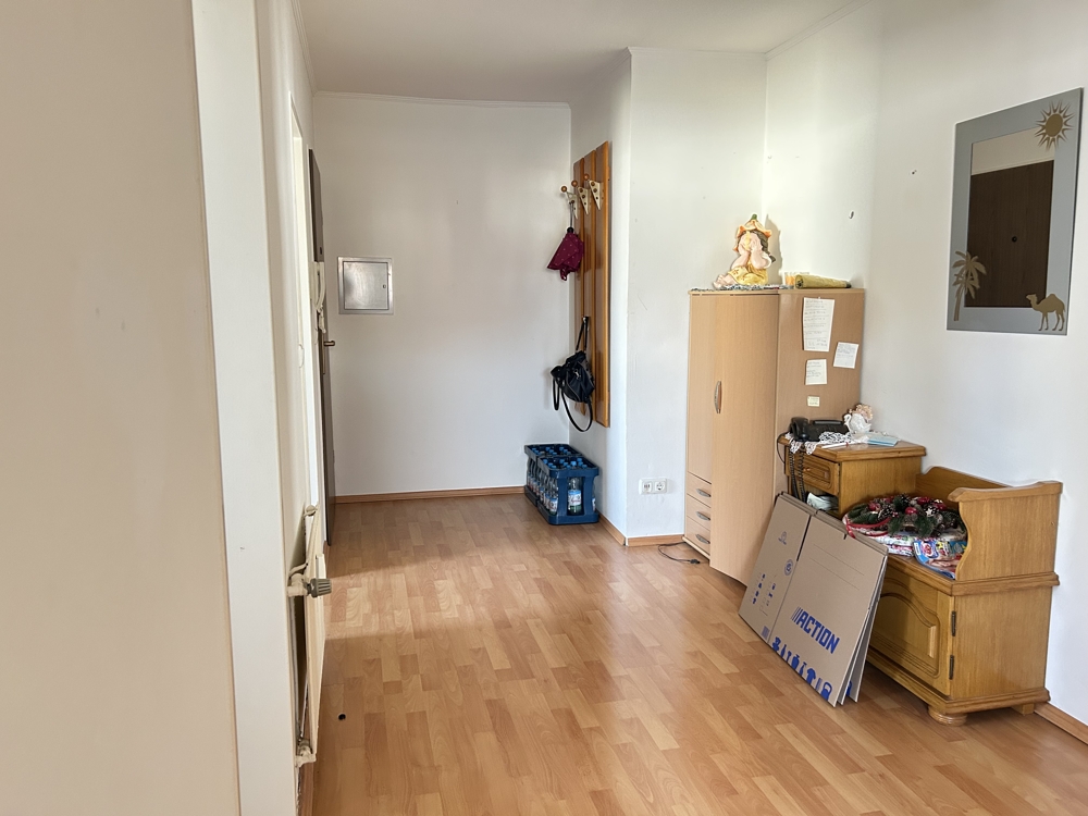 Der großzügige Wohnbereich verfügt ebenfalls über einen Zugang zum Balkon. Der hochwertige Laminatboden sorgt für ein behagliches Wohngefühl, während die offene Gestaltung zahlreiche Möglichkeiten für die individuelle Einrichtung bietet.