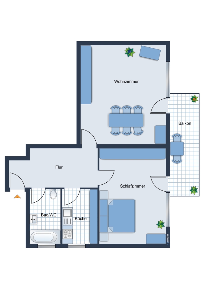 Die Wohnung eignet sich perfekt für Singles und Paare im mittleren Alter.